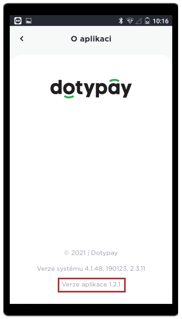 Spustit O aplikaci. V sekci naleznete aktuální verzi terminálu.