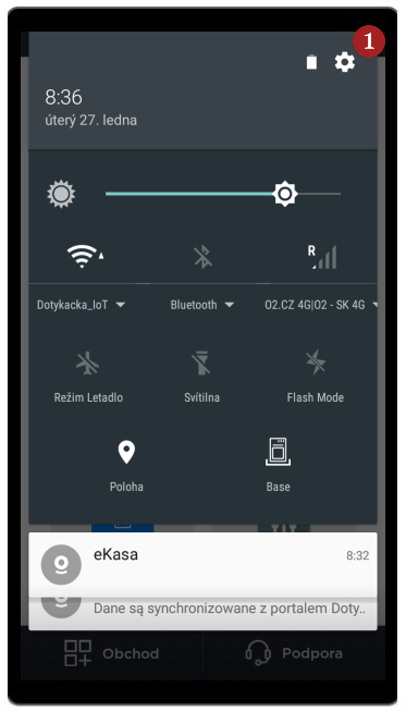 Pokud je SIM karta vložená v terminálu, v sekci Podpora naleznete její ICCID.