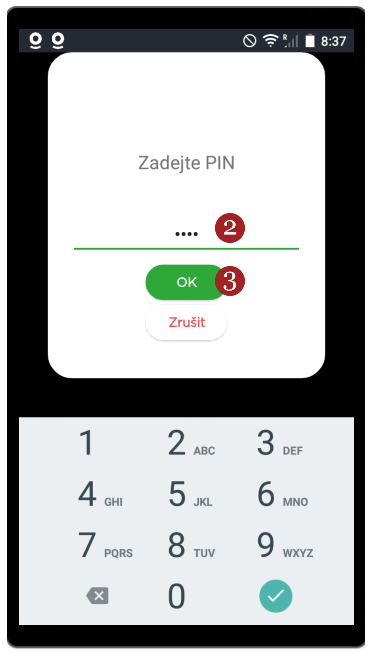 - Zadejte 2 admin PIN (naleznete jej na portálu Dotypay v detailu Zařízení) a klikněte na 3 OK.
