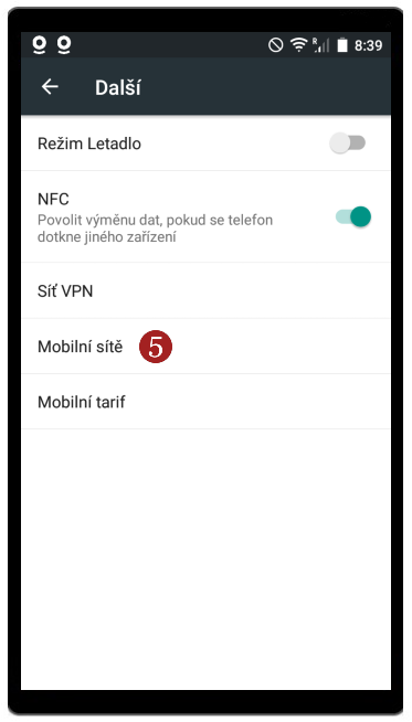 - Zvolte 5 Mobilní sítě.