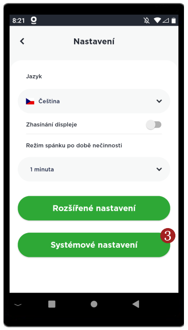 - Zvolte 3 Systémové nastavení.