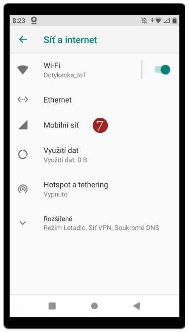 - Dále zvolte 7 Mobilní síť.