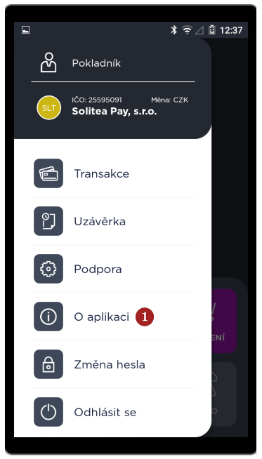 Do sekce 1 O aplikaci se dostanete přes Menu aplikace, naleznete v ní aktuální verzi terminálu.