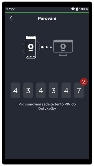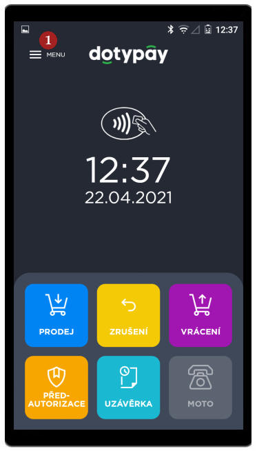 Terminál lze propojit s pokladním systémem Dotykačka. Po zvolení 1 Propojit s Dotykačkou se zobrazí 2 šestimístný kód, který slouží k propojení s aplikací Dotykačka. S propojením Vám pomůže technická podpora Dotykačky na čísle +420 221 221 331 nebo lze využít návodu v manuálu ZDE.