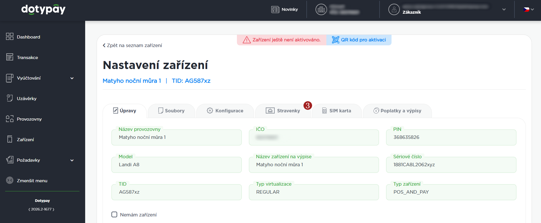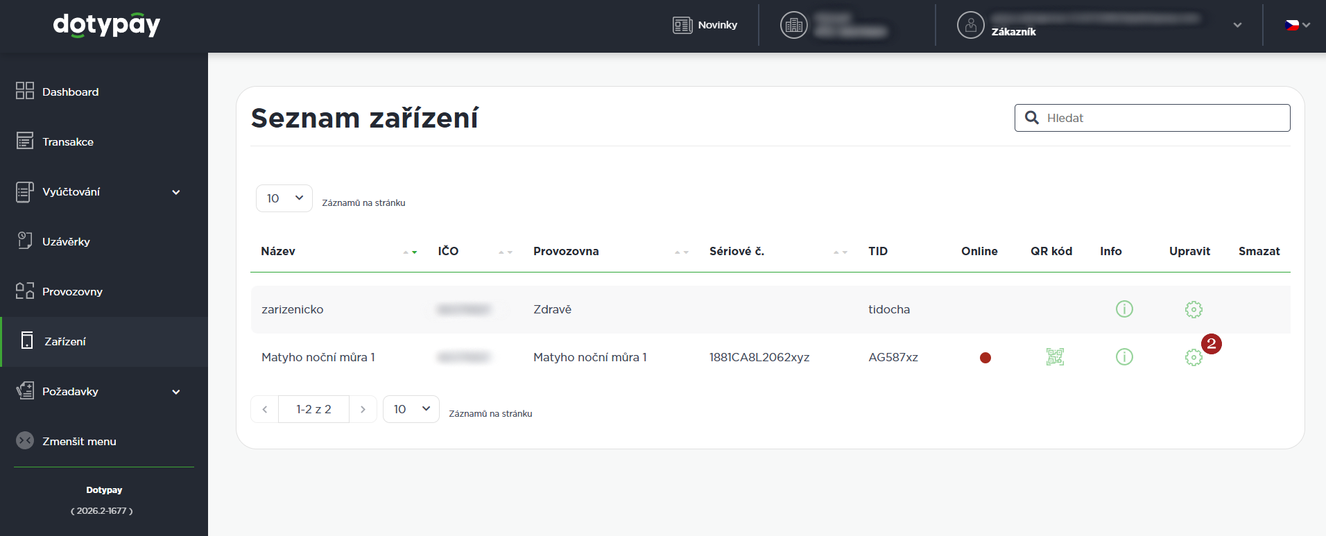 - V postranním menu zvolte 1 Zařízení.