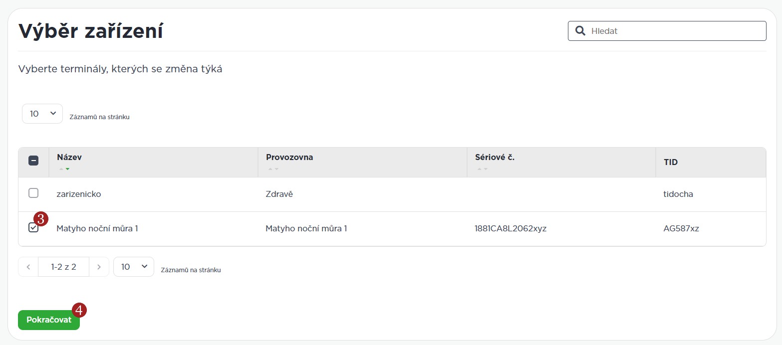 Zobrazí se Vám výběr zařízení. 3 Zvolte si příslušnou provozovnu (lze jich zvolit i více najednou) a volbu potvrďte kliknutím na 4 Pokračovat.