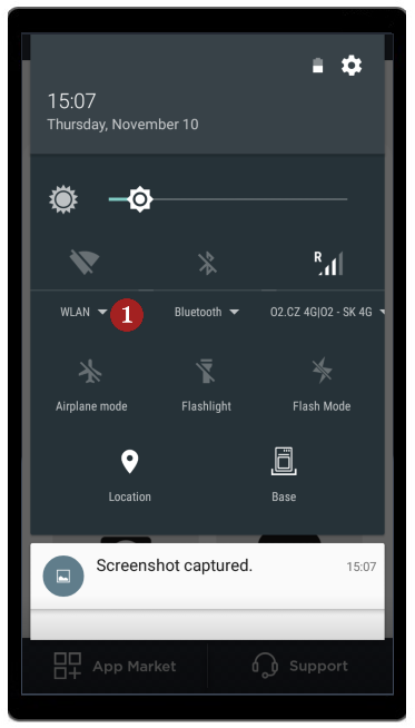 - Swipe down from the top to pull down the top bar (just like a smartphone) and click on the symbol (turns on Wi-Fi) and then click on the 1 Wi-Fi.