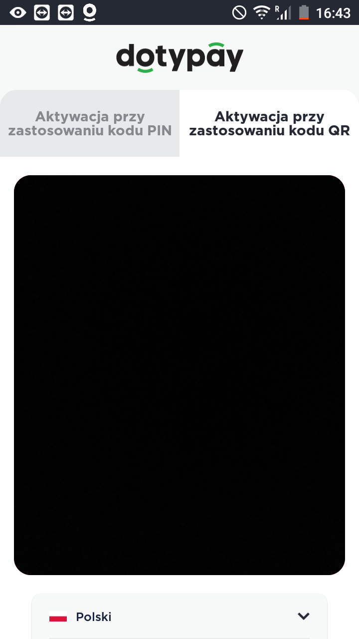 - Możesz również użyć kodu QR do aktywacji. Po kliknięciu 2 Aktywacja przy zastosowaniu kodu QR, urządzenie włączy kamerę, którą następnie możesz skierować na kod QR do aktywacji, który znajdziesz na portalu Dotypay w sekcji Urządzenie.