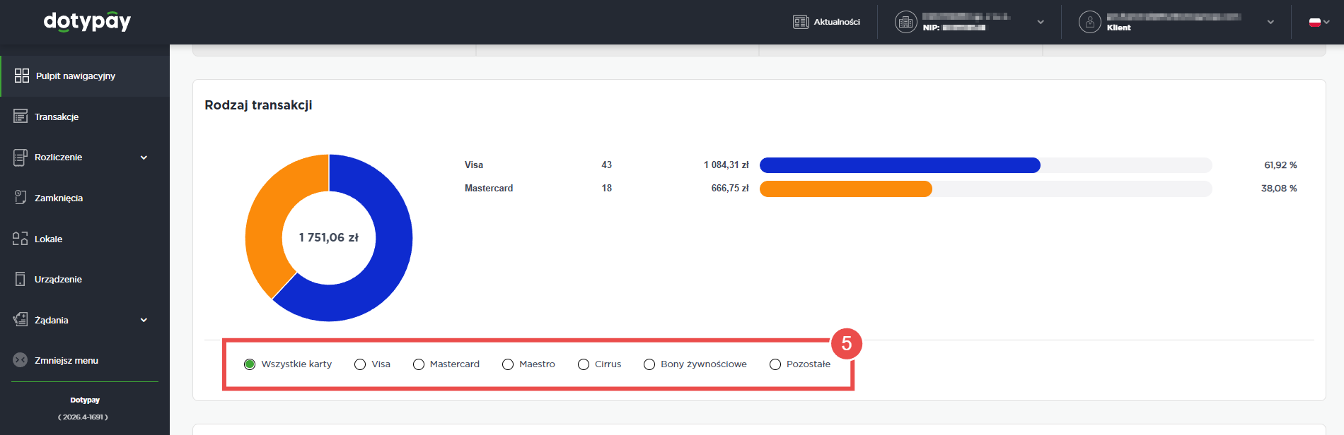 5 Rodzaje kart – Jeśli chcesz wyświetlić dane tylko dla wybranych rodzajów kart, zaznacz je.