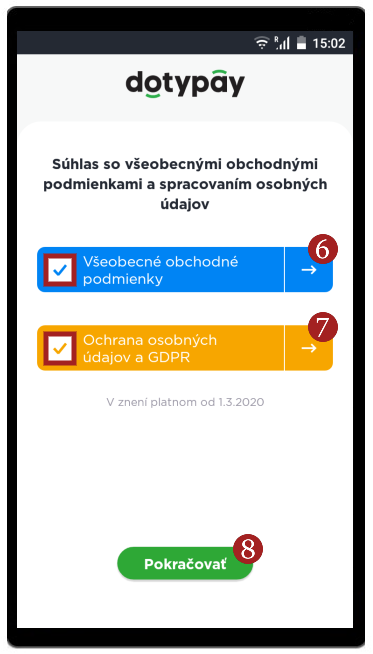 Aktivácia - Spracovanie osobných údajov- Načíta sa obrazovka Dotypay, počkajte na stiahnutie a inštaláciu aplikácie.