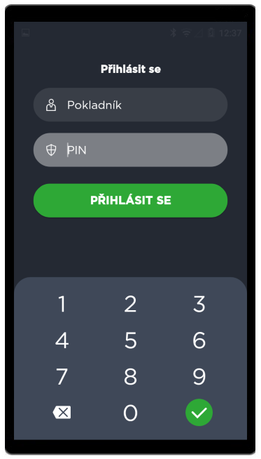 Na domovskej obrazovke (Launcher) vyberte aplikáciu STPAY. Zvoľte si užívateľa a prihláste sa pomocou PINu – Manažér 1111 a Pokladníka 0000.