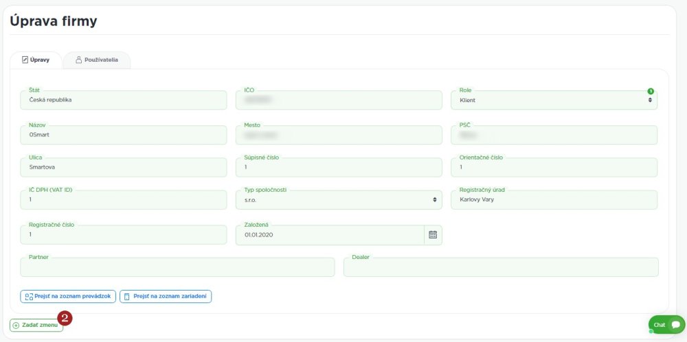 Na portáli Dotypay môžete podať žiadosť o zmenu svojich údajov prostredníctvom funkcie Zadať zmenu. Stačí prejsť na stránku 1 Úprava firmy a v ľavom dolnom rohu vybrať položku 2 Zadať zmenu. Zobrazia sa formulárové polia na nahlásenie požiadavky a stačí ich vyplniť.