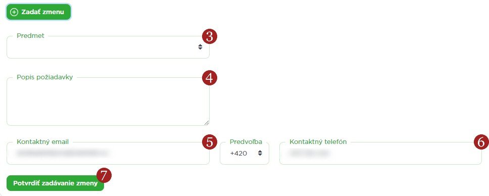 Po vyplnení formulára stačí vybrať možnosť 7 Potvrdiť zadávanie zmeny. Vaša požiadavka bude postúpená zákazníckej podpore, kde pre vás pripravia príslušný formulár zmeny a pošlú vám ho e-mailom s pokynmi na podpis.