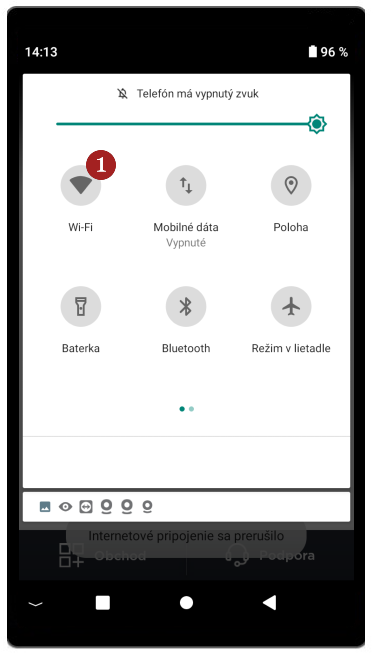 - Potiahnutím zhora nadol stiahnite hornú lištu (rovnako ako pri smartfónoch) a podržte symbol 1 Wi-Fi.