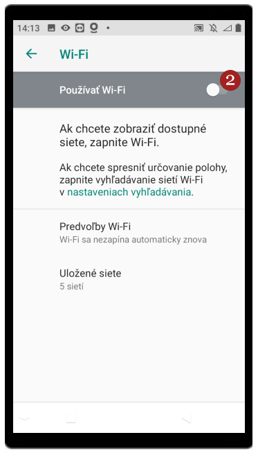 - Zapnite Wi-Fi kliknutím na 2.