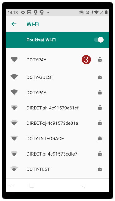 - Zobrazí sa zoznam všetkých dostupných Wi-fi, kliknutím zvoľte svoju 3 Wi-Fi.